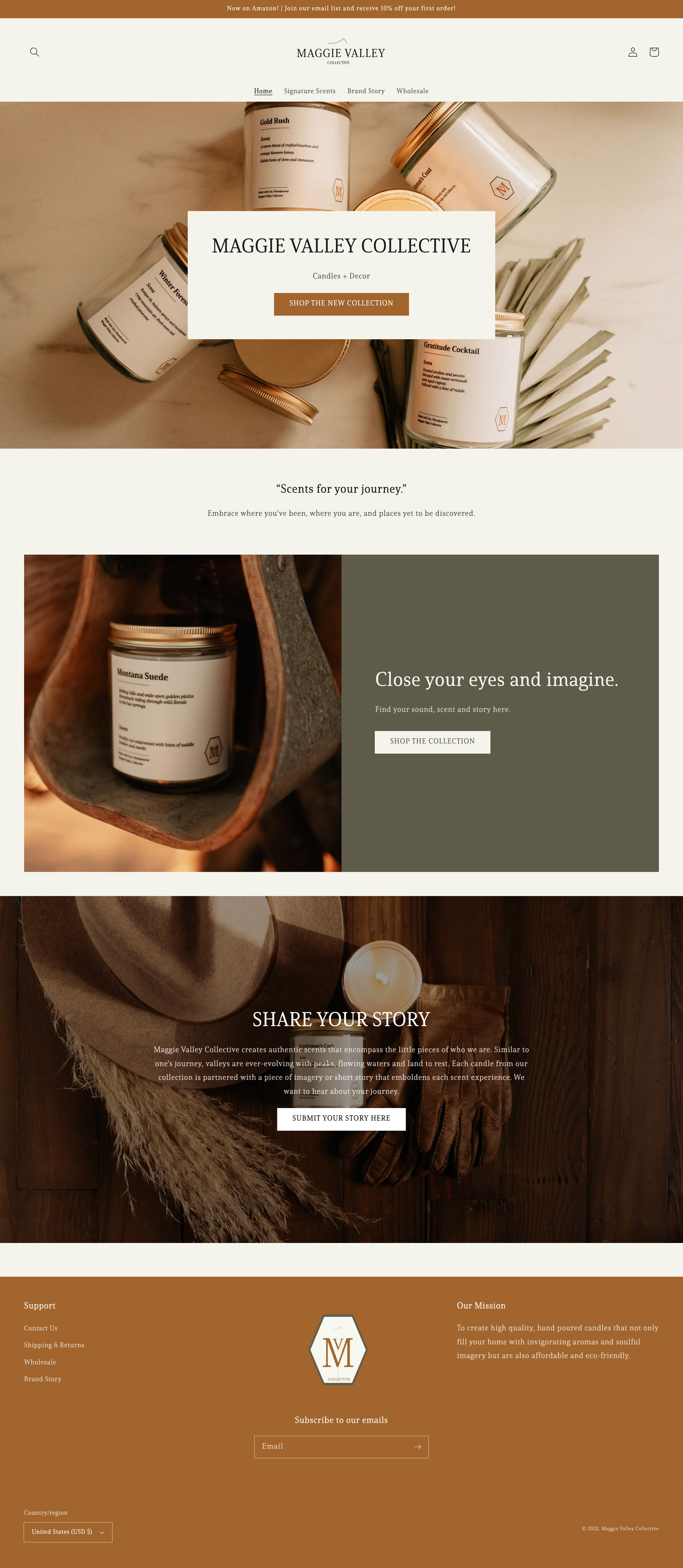 Maggie Valley Collective is a female-founded candle brand inspired by travel, memory, and the warmth of home. Each scent tells a story—rooted in place, emotion, and personal experience.